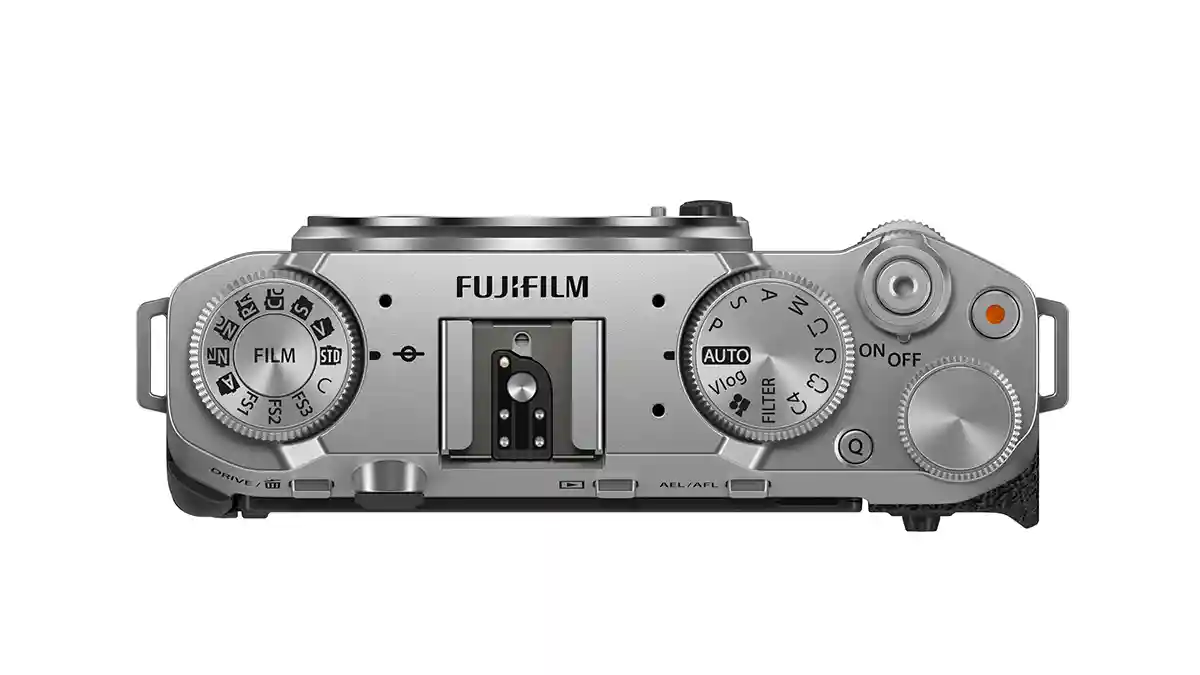 - Dials: Symmetrical dials on top plate, including Film Simulation dial with 20 modes and a Mode dial