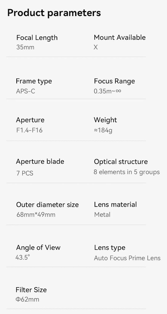 7Artisans AF 35mm f/1.4 XF lens for Fuji X-mount is now officially announced. It is a classic lens in full-frame equivalent. Its high aperture ratio makes it universal for shooting almost any scene, including in low-light conditions.