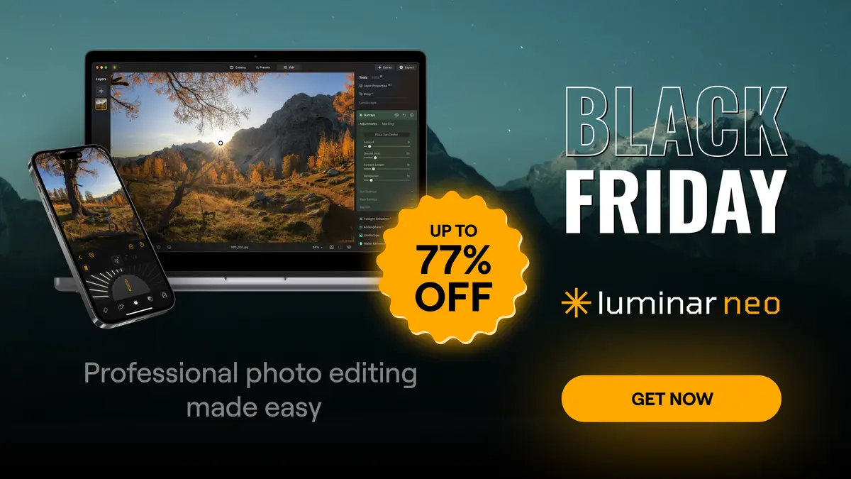 Looking for the best Black Friday photo editing software deals of 2025? Skylum has officially launched its biggest sale of the year, offering up to 75% off on Luminar Neo and the full Luminar Ecosystem. The embargo is lifted, and we finally have all the details — making this the perfect moment to upgrade your creative toolkit or switch to Luminar Neo’s new AI-powered photo editing experience.