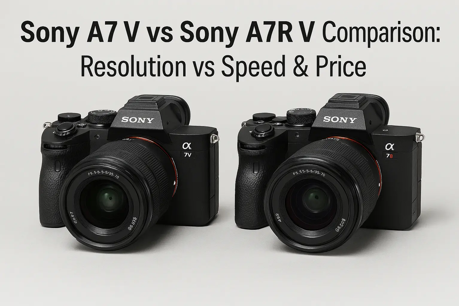 The Sony A7 V vs Sony A7R V comparison is one of the most searched full-frame mirrorless matchups among photographers today. In this guide, we compare price, specs, autofocus, video features, and the key resolution vs speed trade-off to help you decide which Sony full-frame mirrorless camera fits your shooting style. The Sony A7 V focuses on hybrid performance and speed, while the Sony A7R V is built for photographers who prioritize ultra-high resolution.