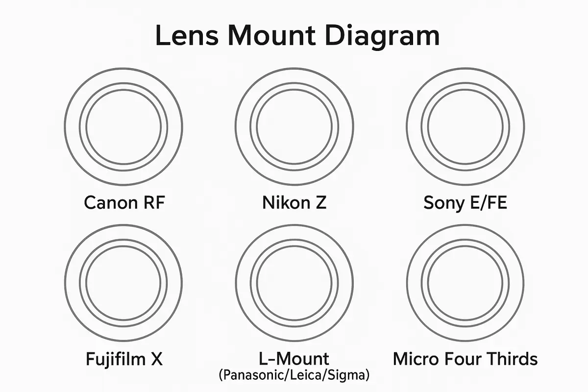 One of the biggest challenges for new buyers is understanding lens compatibility. Unlike DSLRs, where lenses lasted across decades, mirrorless mounts differ in design, flange distance, and communications. Below is a simplified breakdown of today’s major systems.