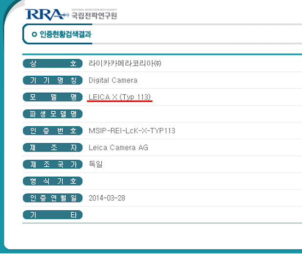 Leica is rumored to announce a new X type camera in 2014. Leica X type 113 camera gets registered at the Korean Radio Research Agency. Digicame-info spotted...