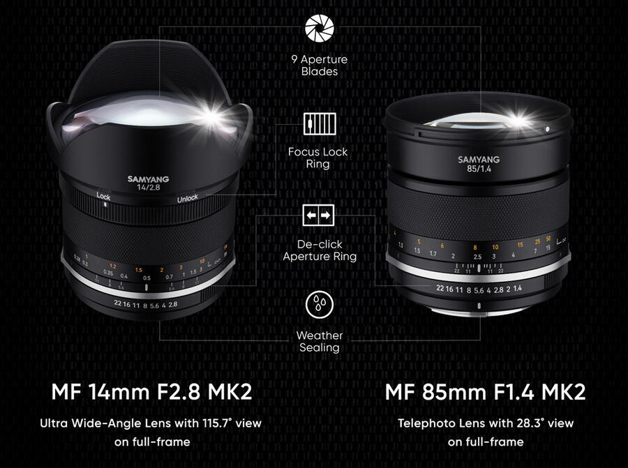 Samyang has announced two new Manual Focus lenses, the Samyang MF 14mm f/2.8 Mark II updates the original 14mm f/2.8 lens, and the Samyang MF...
