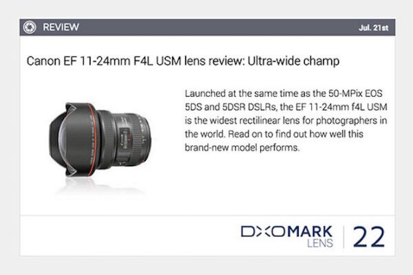 DxOMark published their test results for the Canon EF 11-24mm f/4L USM wide-angle zoom lens which is currently priced for $2999.00 at Amazon. The EF 11-24mm f/4L lens test results shows the lens score...