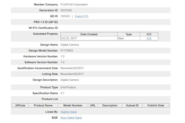 A new Fujifilm cameraĀ registered at theĀ Bluetooth certification authority with the code name “FF170003”. This camera will probably be previously rumored Fujifilm X80, X-T2S. These are...
