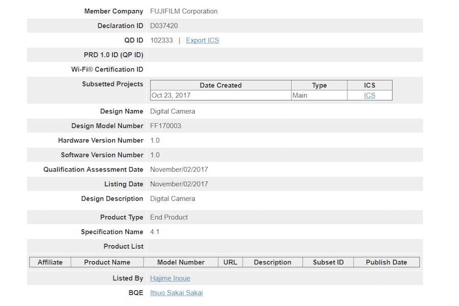 A new Fujifilm camera registered at the Bluetooth certification authority with the code name “FF170003”. This camera will probably be previously rumored Fujifilm X80, X-T2S. These are...