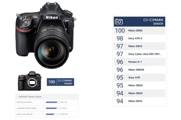 Nikon D850 sensor review published by DxOMark. They say “The Nikon D850’s first full-frame BSI sensor breaks new ground for image quality as the first DSLR...