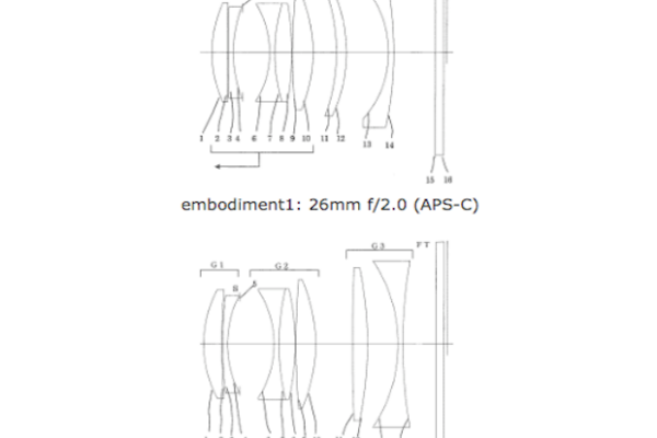 Egami has discovered a new patent filed by Ricoh. The new patent describes a Ricoh 26mm f/1.8 and f/2 lens for mirrorless APS-C sized sensor cameras. It...
