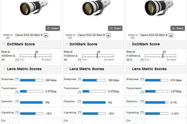 DxOMark has posted their test results for the Canon EF 500mm f/4L IS II USM and EF 600mm f/4L IS II USM super telephoto prime lenses....