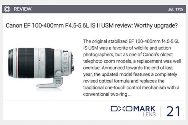 DxOMark published their test results for the Canon EF 100-400mm f/4.5-5.6L IS II USM compact, high-performance L-series supertele zoom lens that is ideally suited for sports and wildlife photography...